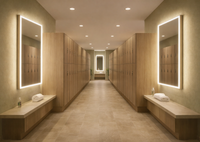 Institutions are the perfect fit for our mirrors. While not all the features are needed in this application, the lighted mirror is becoming a “must have” for these places. Even though this is typically a more basic mirror, their function and look are extremely popular in the health and wellness industry. Their demand is definitely trending upward!