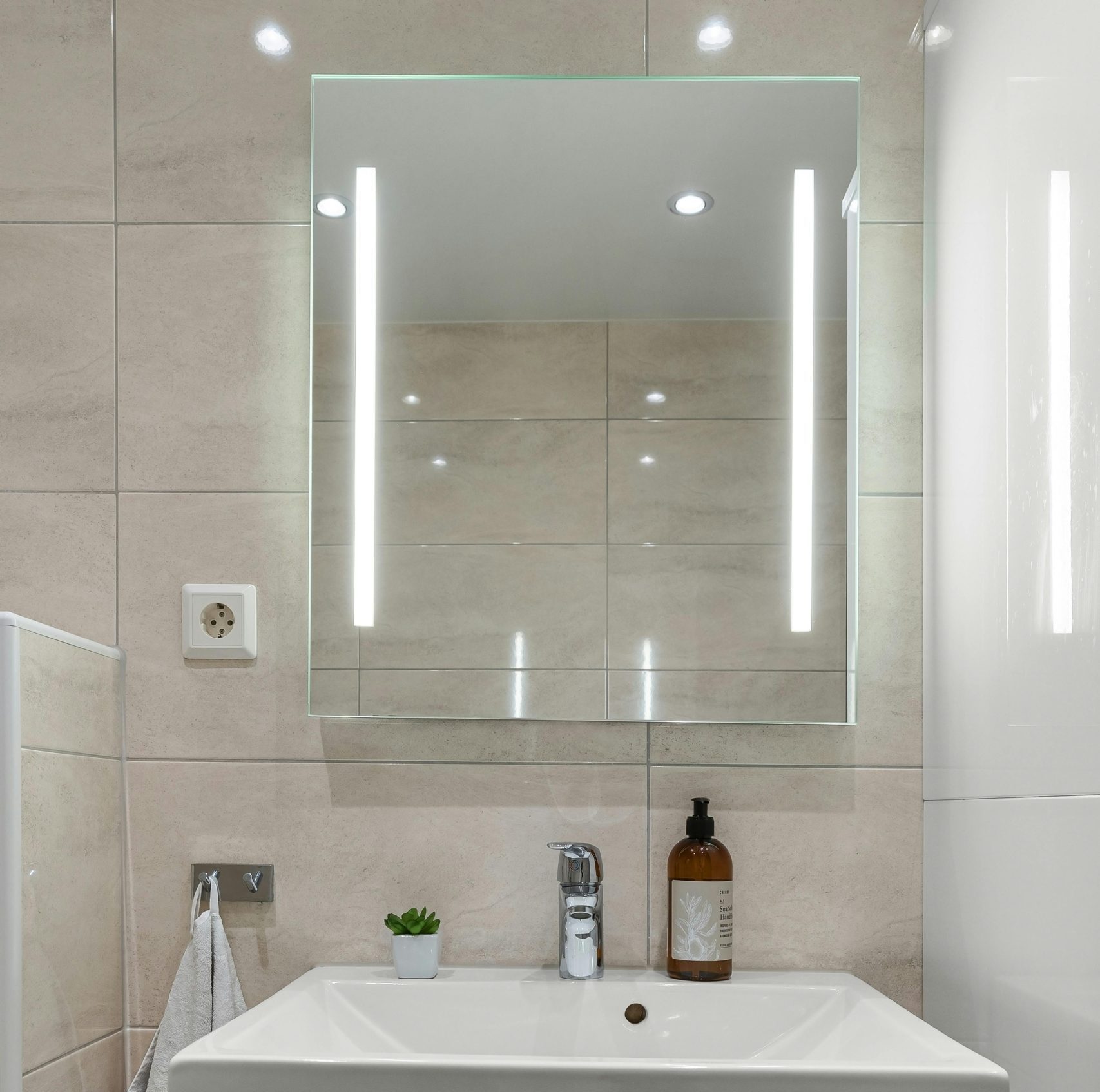 The Prominence 2–Bar Mirror gives you either a Top/Bottom or Left/Right design aesthetic with an offset illumination 2 inches from the mirror’s edge as well as the option of straight edge or rounded corners. Available in a fully customizable rectangular or square silhouette. The optional one-touch dimming system allows you to choose the perfect light intensity and color temperature—from a cool 5,000K task lighting to a warm, sunlit 2,700K glow. Elevate your experience even further with upgrades like an integrated night light, a built-in Bluetooth speaker, and other user-friendly features that transform your mirror into a personalized statement of style and function.