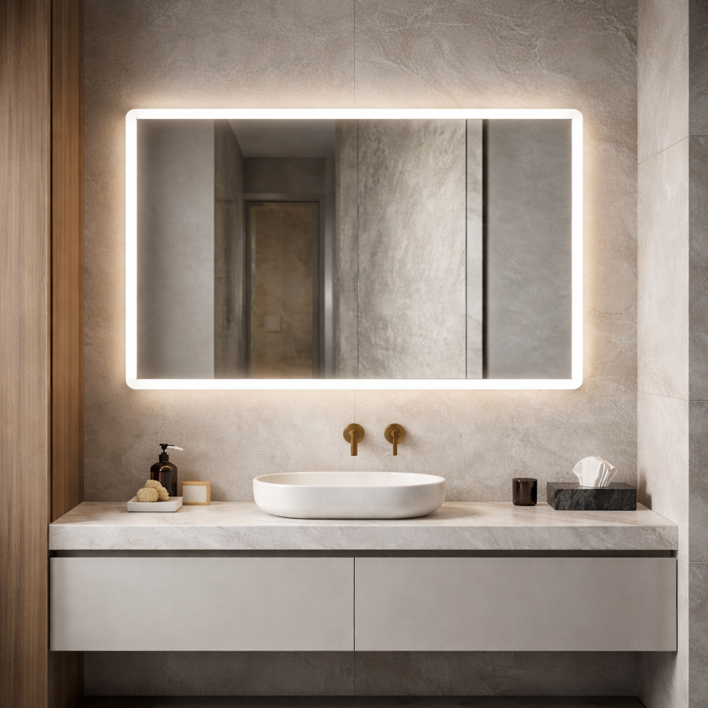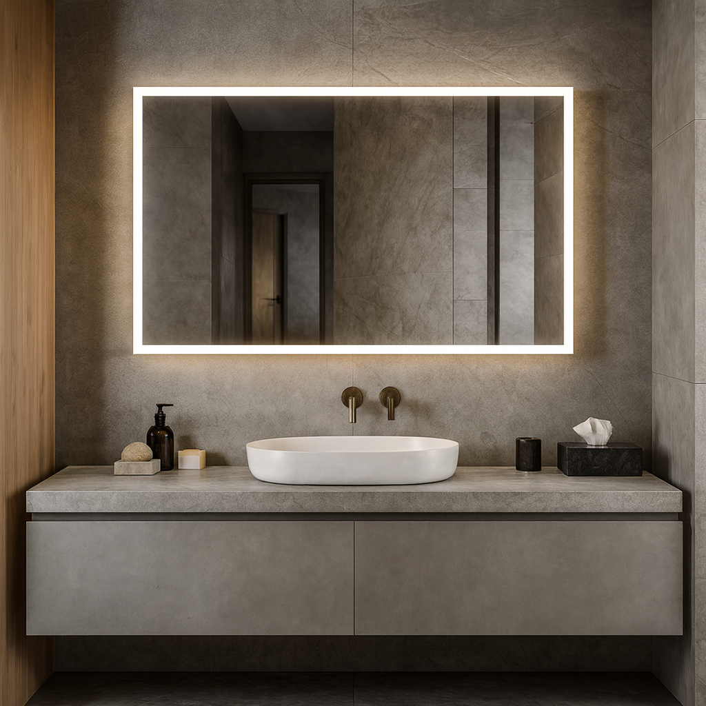 The Signature Edge Series offers you a full edge to edge light coverage around the entire border of the mirror as well as the option of a sleek square edge or rounded corners. Available in a fully customizable rectangular or square silhouette. The optional one-touch dimming system allows you to choose the perfect light intensity and color temperature—from a cool 5,000K task lighting to a warm, sunlit 2,700K glow. Elevate your experience even further with upgrades like an integrated night light, a built-in Bluetooth speaker, and other user-friendly features that transform your mirror into a personalized statement of style and function.