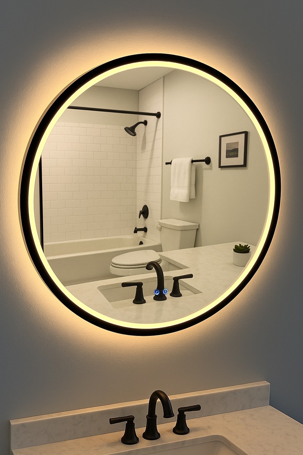 - Inward-facing, UV Free task lighting, and ambient wall glow illumination with backlit option