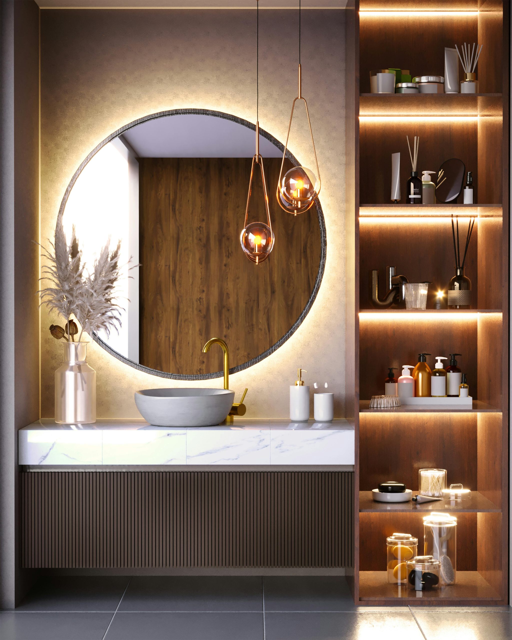 The Wall Glow Circle Series offers you a full backlit illumination around the perimeter of the mirror. Available in a fully customizable circular or oval silhouette. The optional one-touch dimming system allows you to choose the perfect light intensity and color temperature—from a cool 5,000K task lighting to a warm, sunlit 2,700K glow. Elevate your experience even further with upgrades like an integrated night light, a built-in Bluetooth speaker, and other user-friendly features that transform your mirror into a personalized statement of style and function.